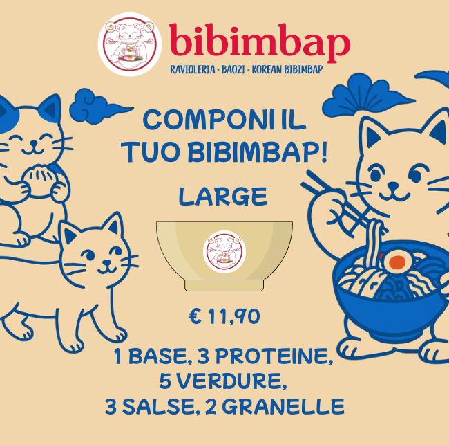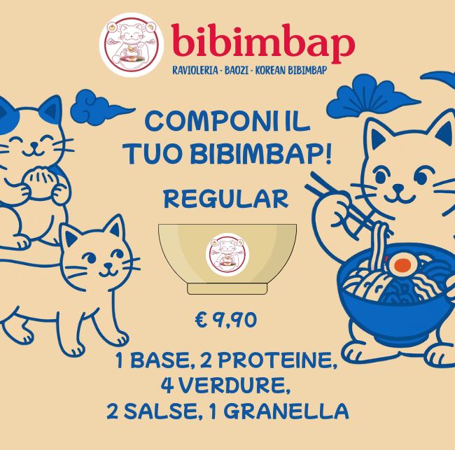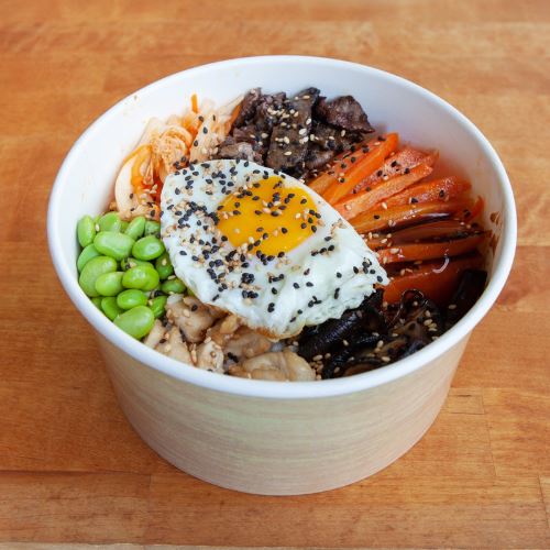 Un piatto a base di riso, carne, verdure e uova. Un pasto completo ed equilibrato da consumare sul posto o da take-away.